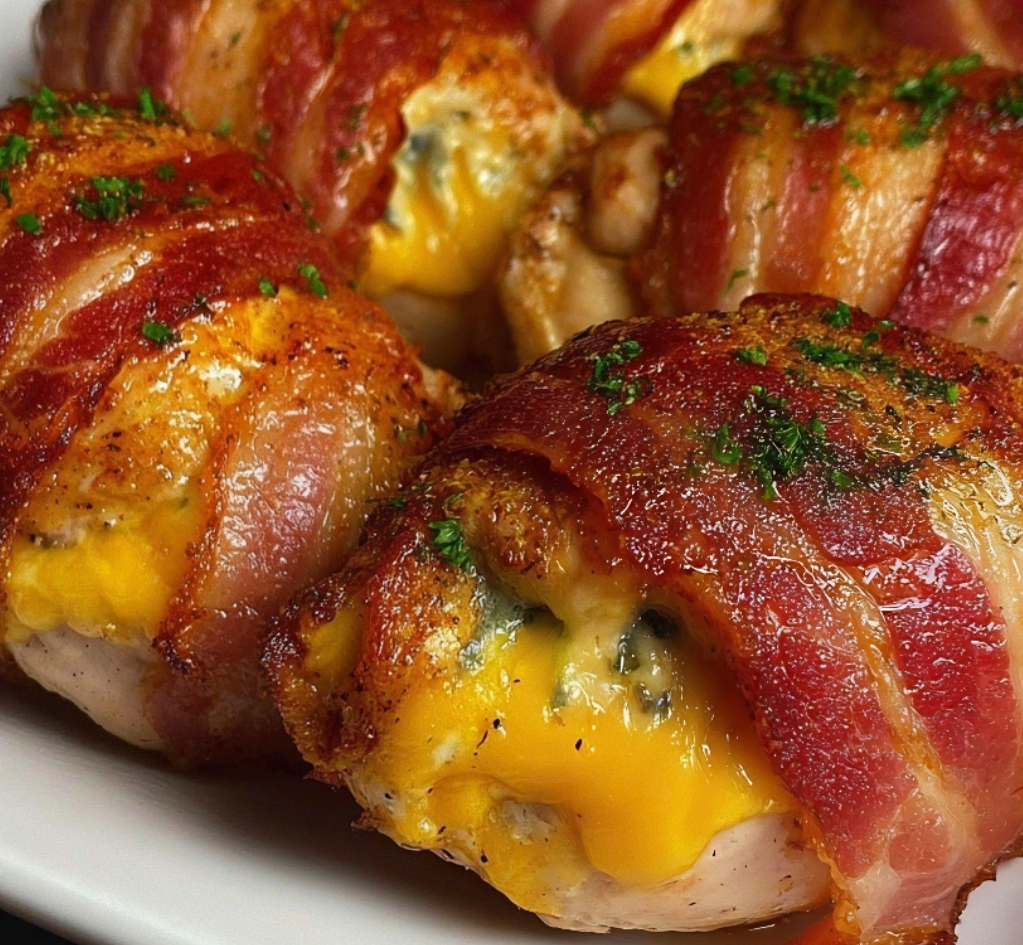 These Cheese-Stuffed Bacon Chicken Rolls are a mouthwatering combination of juicy chicken, gooey melted cheese, and crispy bacon. Perfect for a family dinner or party appetizer, this dish is packed with flavor and sure to impress!