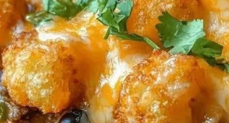 Place in the oven for 30–35 minutes, until the tater tots are golden brown and the cheese is melted and bubbly. - Serve: