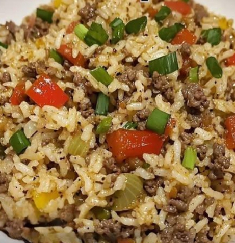 3. Stir in rice, diced tomatoes (undrained), chicken broth, salt, pepper, and Cajun seasoning (if using).