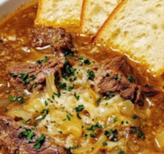 French Onion Soup with Beef Short Ribs is a rich and comforting twist on the classic dish. The deep, caramelized flavors of onions meld beautifully with tender, slow-cooked beef short ribs, creating a hearty and satisfying meal. Topped with crusty French bread and melted Gruyère or Swiss cheese, this soup is perfect for chilly evenings or when you crave something indulgent yet homey.