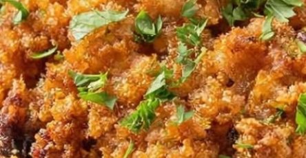 Place the sliced okra in a bowl and pour the buttermilk over it. Let it soak for about 10–15 minutes.