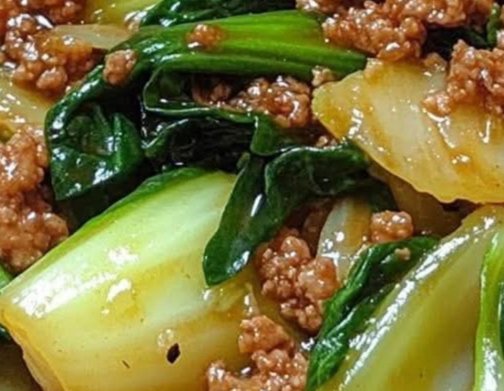 Savory Garlic Stir-Fried Bok Choy with Juicy Ground Meat