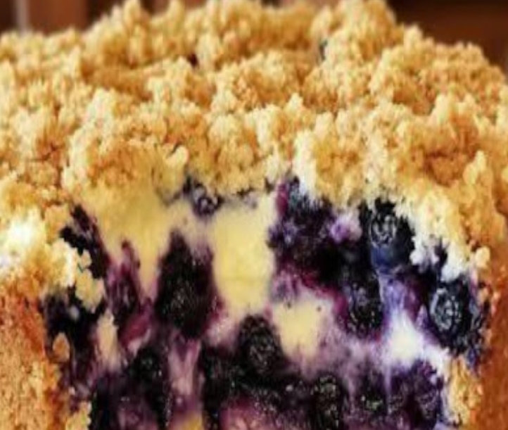• ½ cup flour• ½ cup brown sugar• 1 tsp cinnamon• ¼ cup cold butter, cubed🧀 For the Cream Cheese Layer:• 8 oz cream cheese, softened• ¼ cup sugar• 1 egg• ½ tsp vanilla extract🍰 For the Cake:• 1 ½ cups flour• ½ tsp baking powder• ¼ tsp baking soda• ¼ tsp salt• ½ cup butter, softened• ¾ cup sugar• 2 eggs• ½ cup sour cream• 1 tsp vanilla extract• 1 ½ cups blueberries (fresh or frozen)👩🍳 Step-by-Step1. Make the Crumb Topping① Mix flour, brown sugar, and cinnamon. Cut in cold butter until crumbly. Set aside.2. Prepare the Cream Cheese Layer① Beat cream cheese, sugar, egg, and vanilla until smooth. Set aside.3. Make the Cake Batter① Whisk flour, baking powder, baking soda, and salt.② In another bowl, cream butter and sugar, then add eggs, sour cream, and vanilla.③ Gradually mix in dry ingredients. Fold in blueberries.4. Layer & Bake① Spread cake batter in a greased 9×13” pan.② Dollop cream cheese mixture on top and swirl gently.③ Sprinkle crumb topping evenly.⏰ Bake at 350°F (175°C) for 40-45 mins until golden.5. Cool & Serve!🍽️ Best served slightly warm with a dusting of powdered sugar.💡 Pro Tips for the Best Cake🔥 Extra juicy berries? Toss frozen blueberries in 1 tbsp flour first.🍋 More zing? Add 1 tsp lemon zest to the cream cheese layer.⏳ Make ahead? Freeze up to 3 months (thaw overnight).Categories